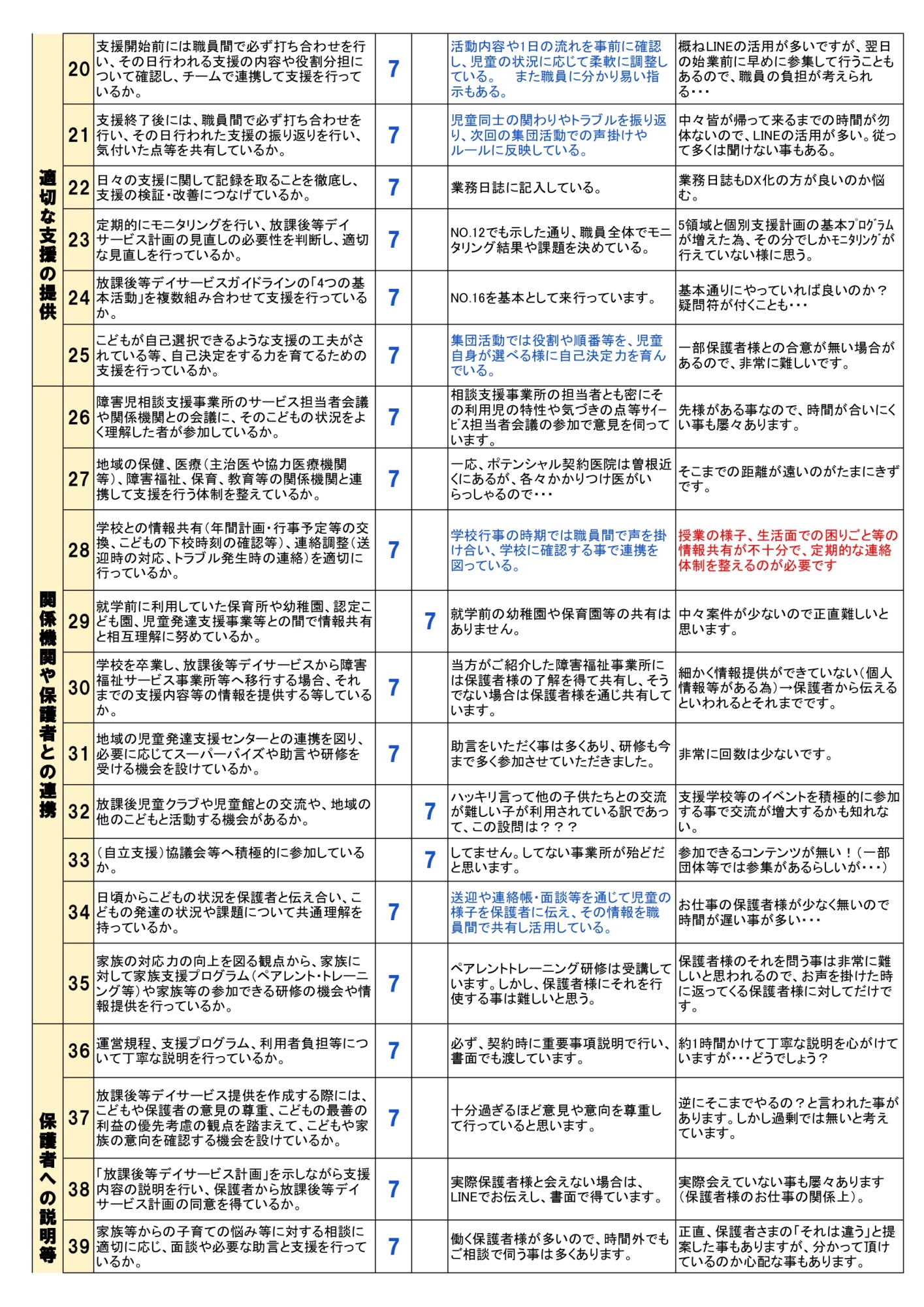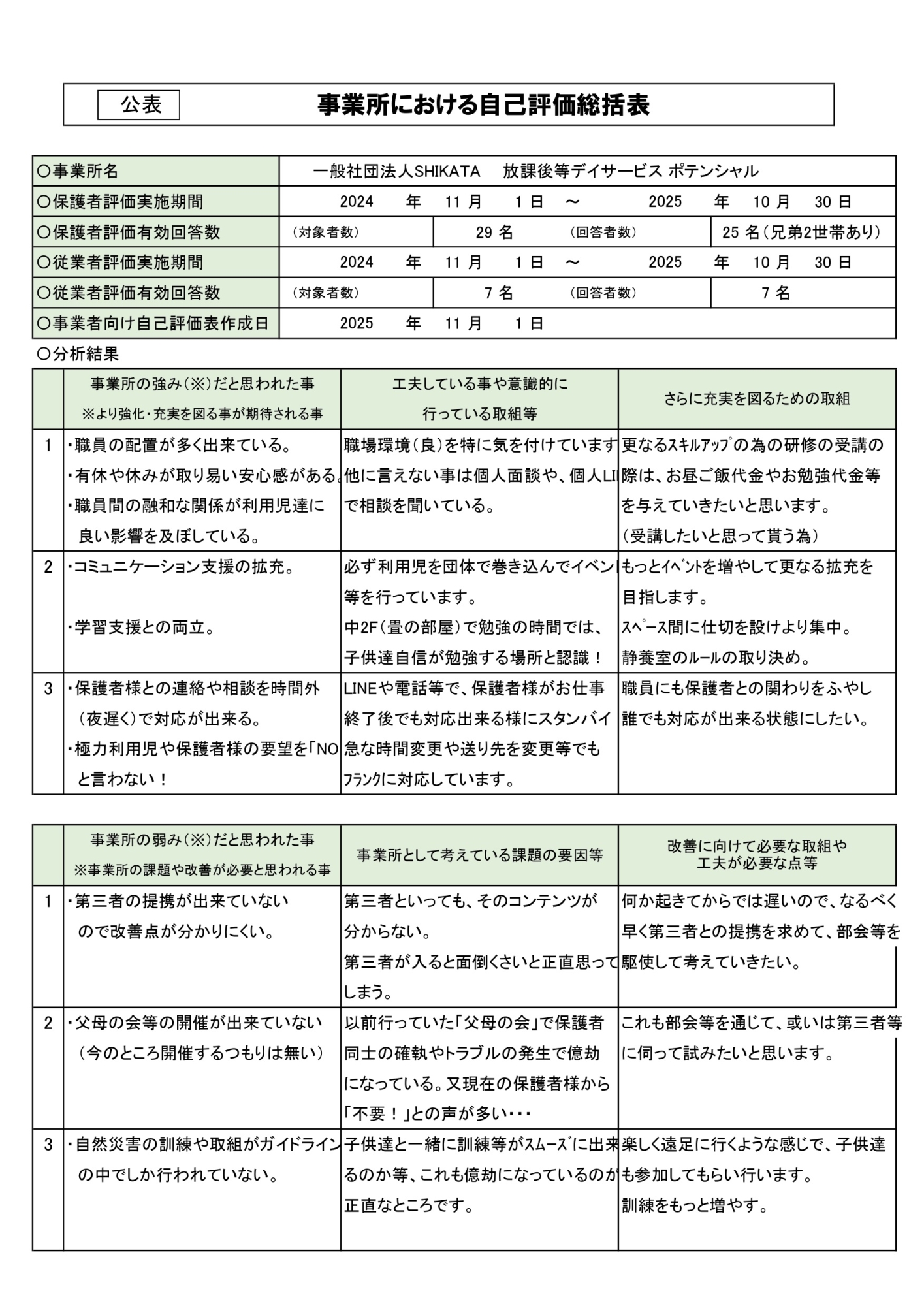 令和6年度【放課後等デイサービス評価アンケート(保護者様)】アンケート結果及びご意見を頂いましたので、改善項目を計画をたてて邁進致します。